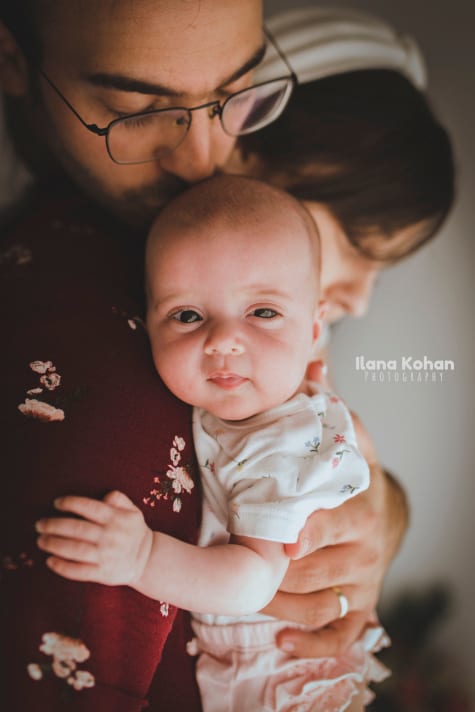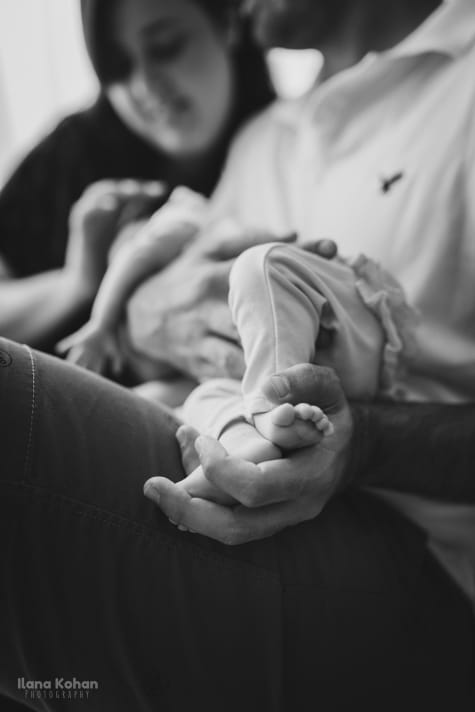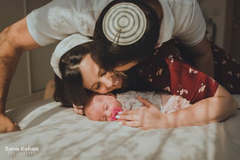 מה אם התינוק לא נינוח? זה חלק מהאווירה והצילומים, אני מצלמת אתכם מרגיעים אותו. אני לא מעמידה את התינוק בכל מיני תנוחות או מלבישה אותו באביזרים, מקסימום אם אתם בעניין, מפשיטים אותו ומצלמים אותו עטוף וקרוב קרוב לאימא ואבא.