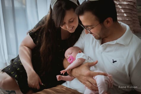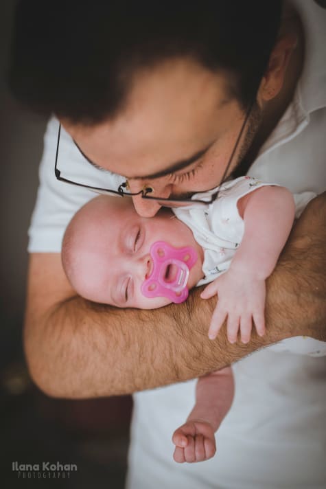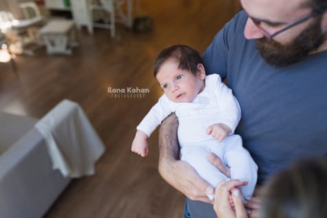 מה אם התינוק לא נינוח? זה חלק מהאווירה והצילומים, אני מצלמת אתכם מרגיעים אותו. אני לא מעמידה את התינוק בכל מיני תנוחות או מלבישה אותו באביזרים, מקסימום אם אתם בעניין, מפשיטים אותו ומצלמים אותו עטוף וקרוב קרוב לאימא ואבא.